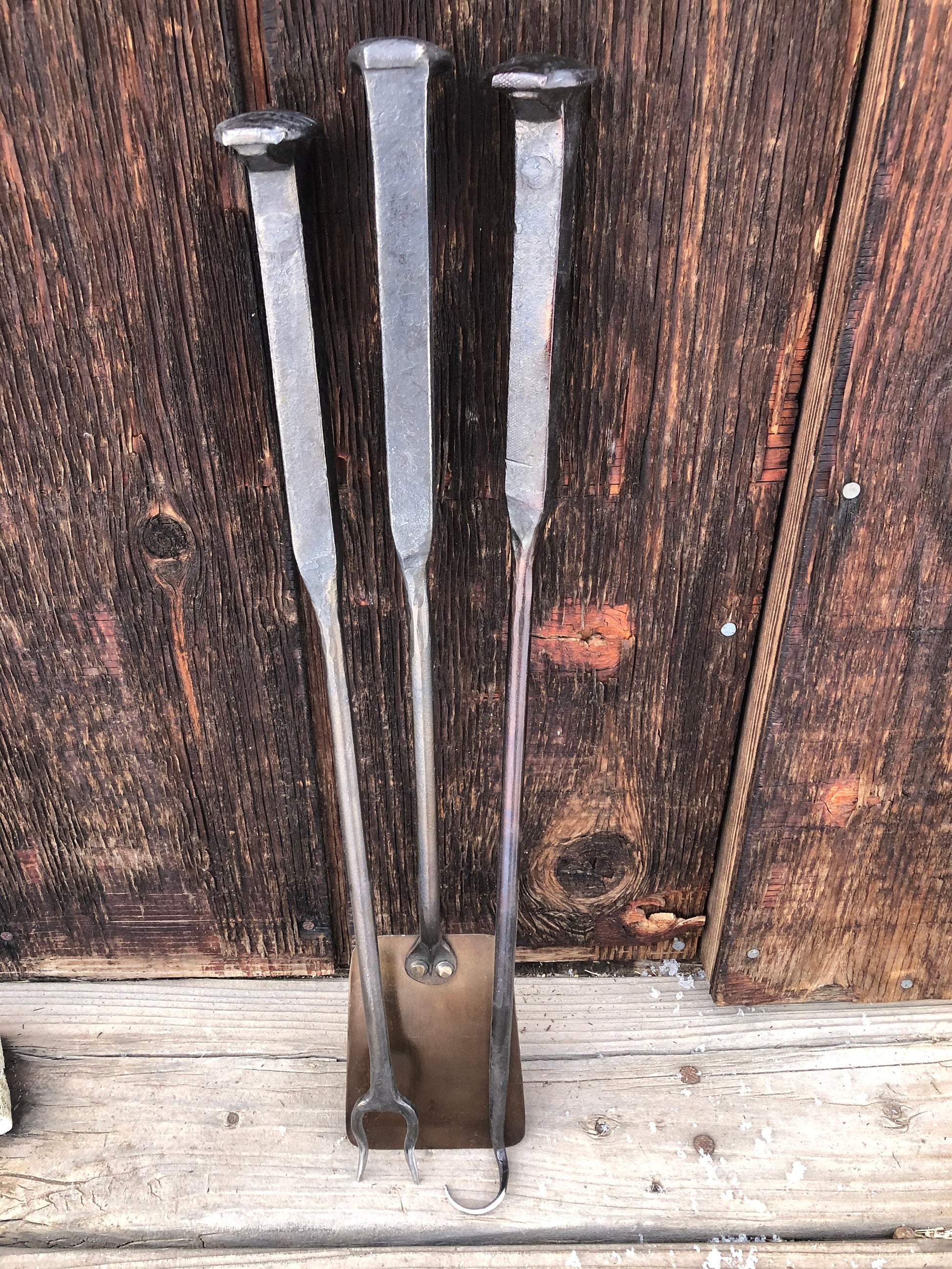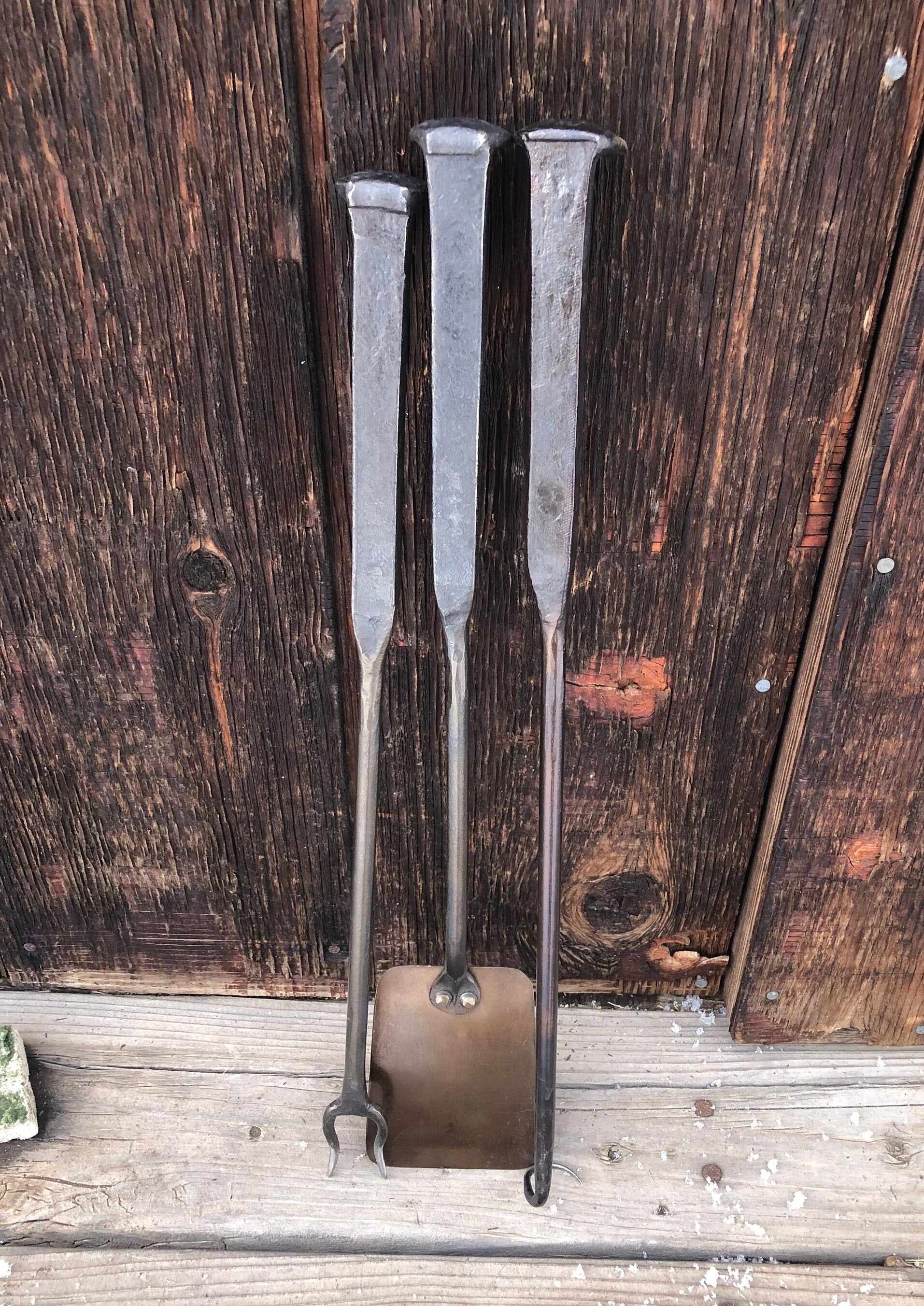 Barbecue Tool Set - Fork, Flipper, Spatula - Railroad Spike Fork, Flipper, and Spatula - Handmade in USA