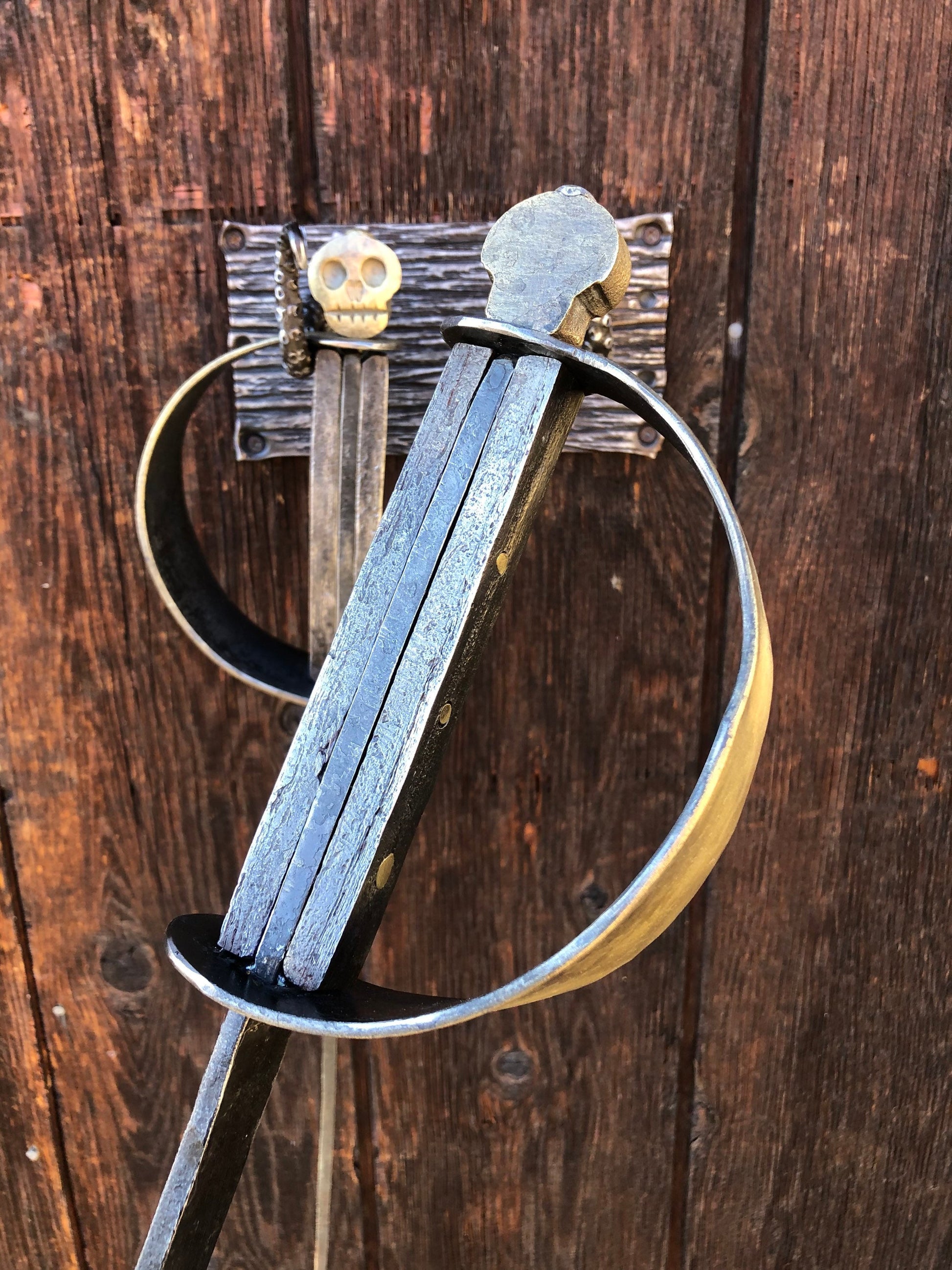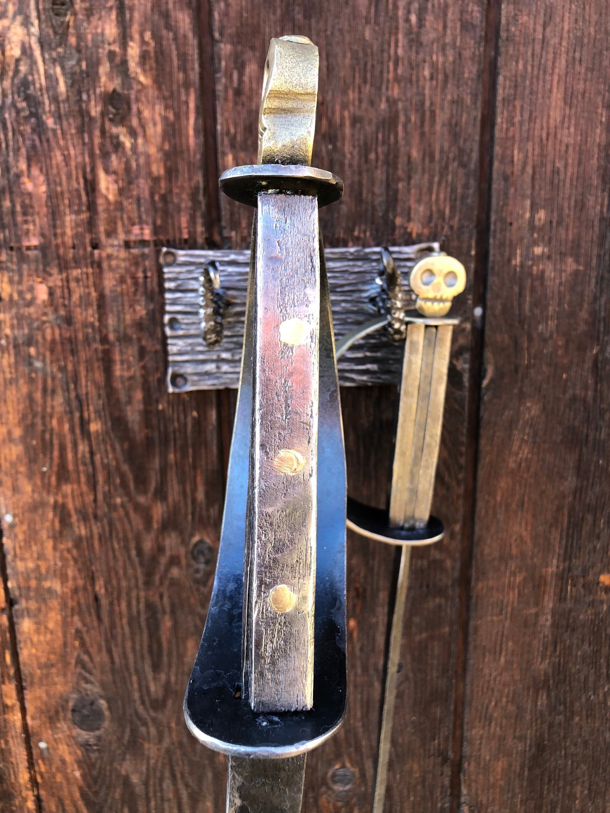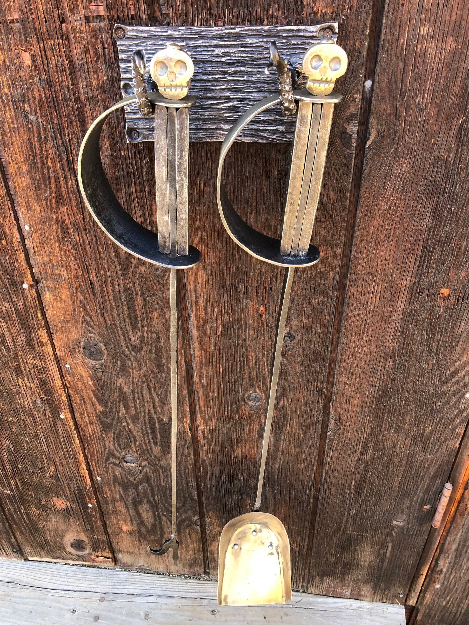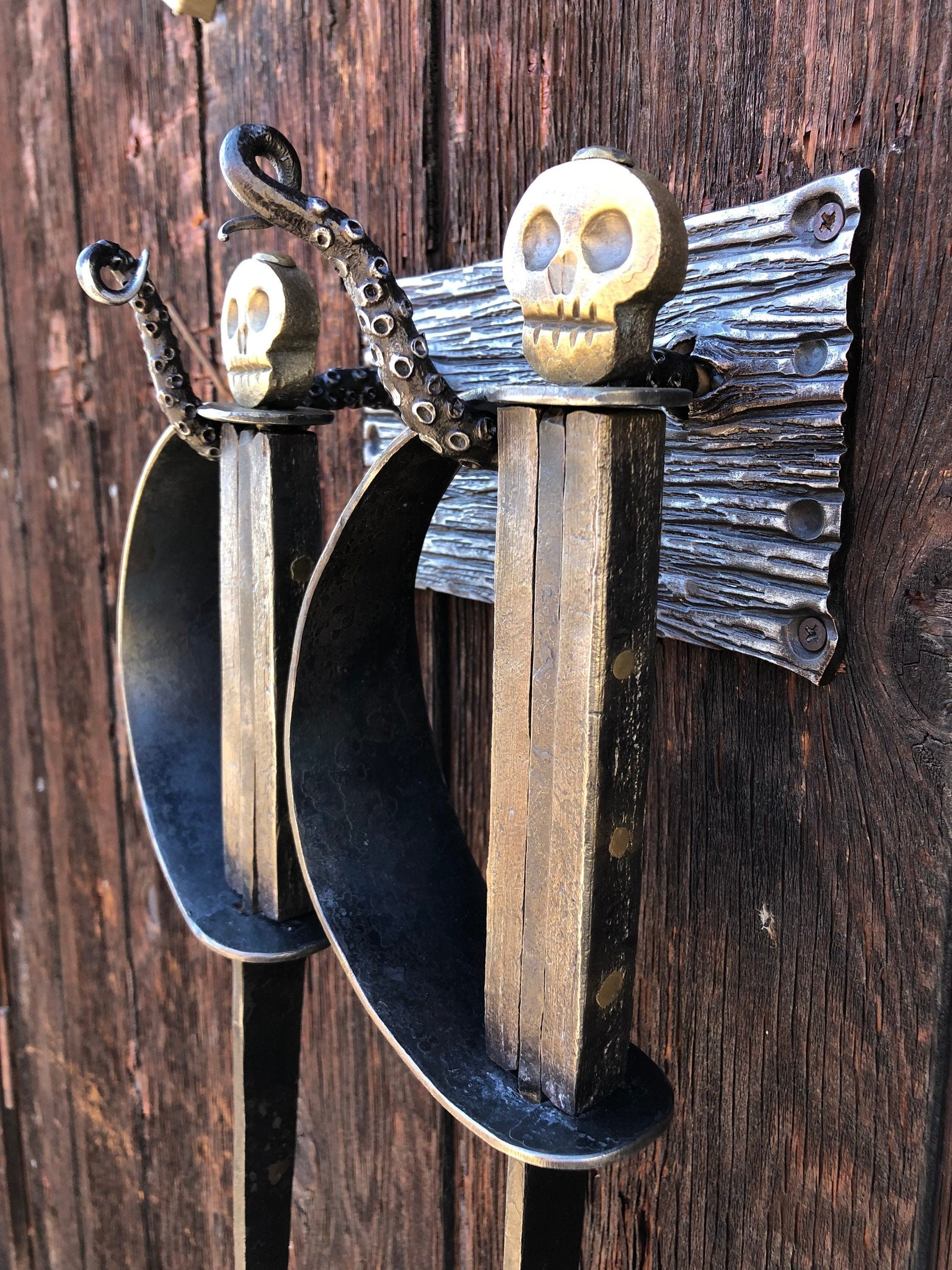 Fireplace Set Hand Forged Pirate Sword Style - Nautical Art - Wall Mounted - Handmade In USA