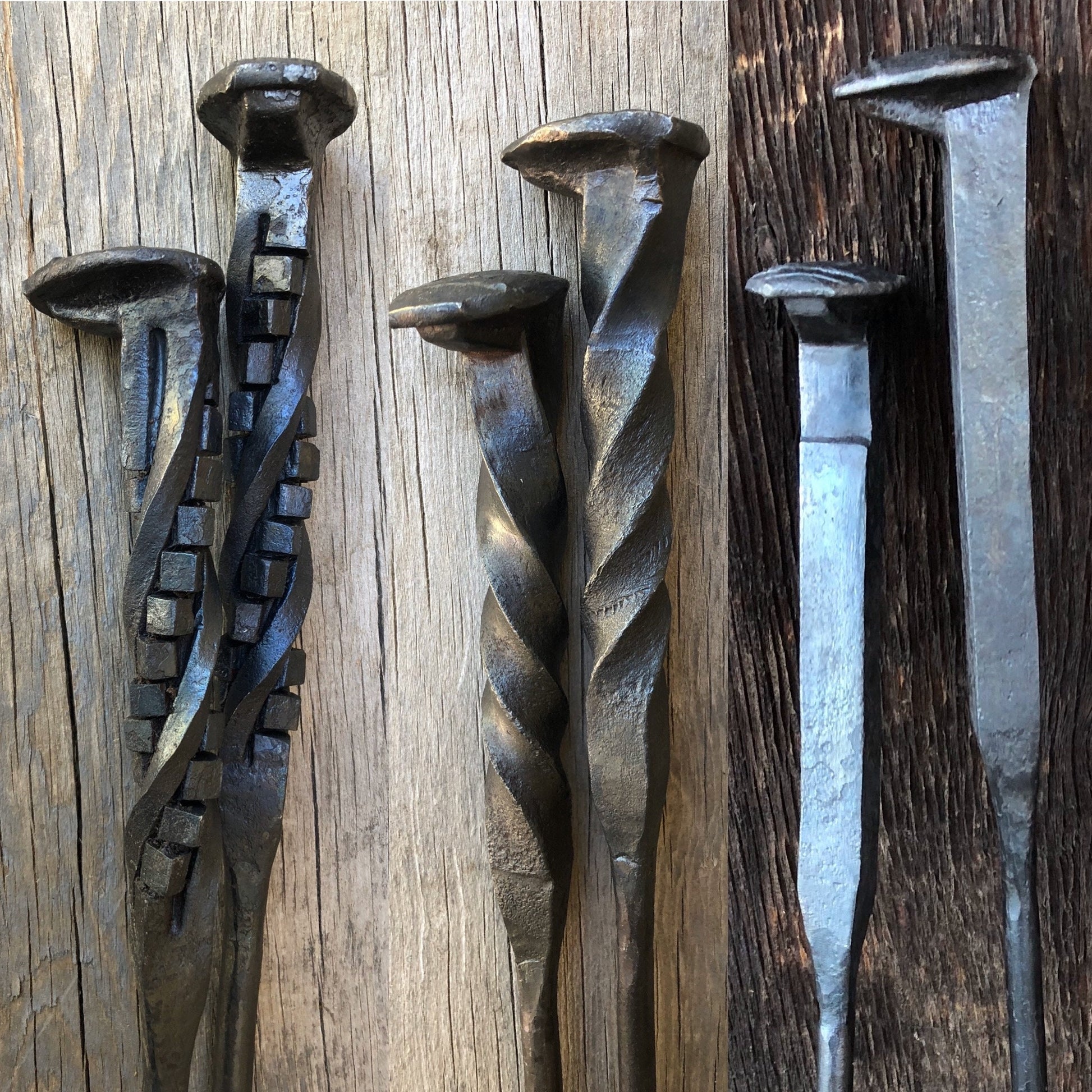 You can select from one of three railroad spike handle styles (straight, twisted or stair-step). The straight handle can also be personalized, please see our personalized ash shovel.