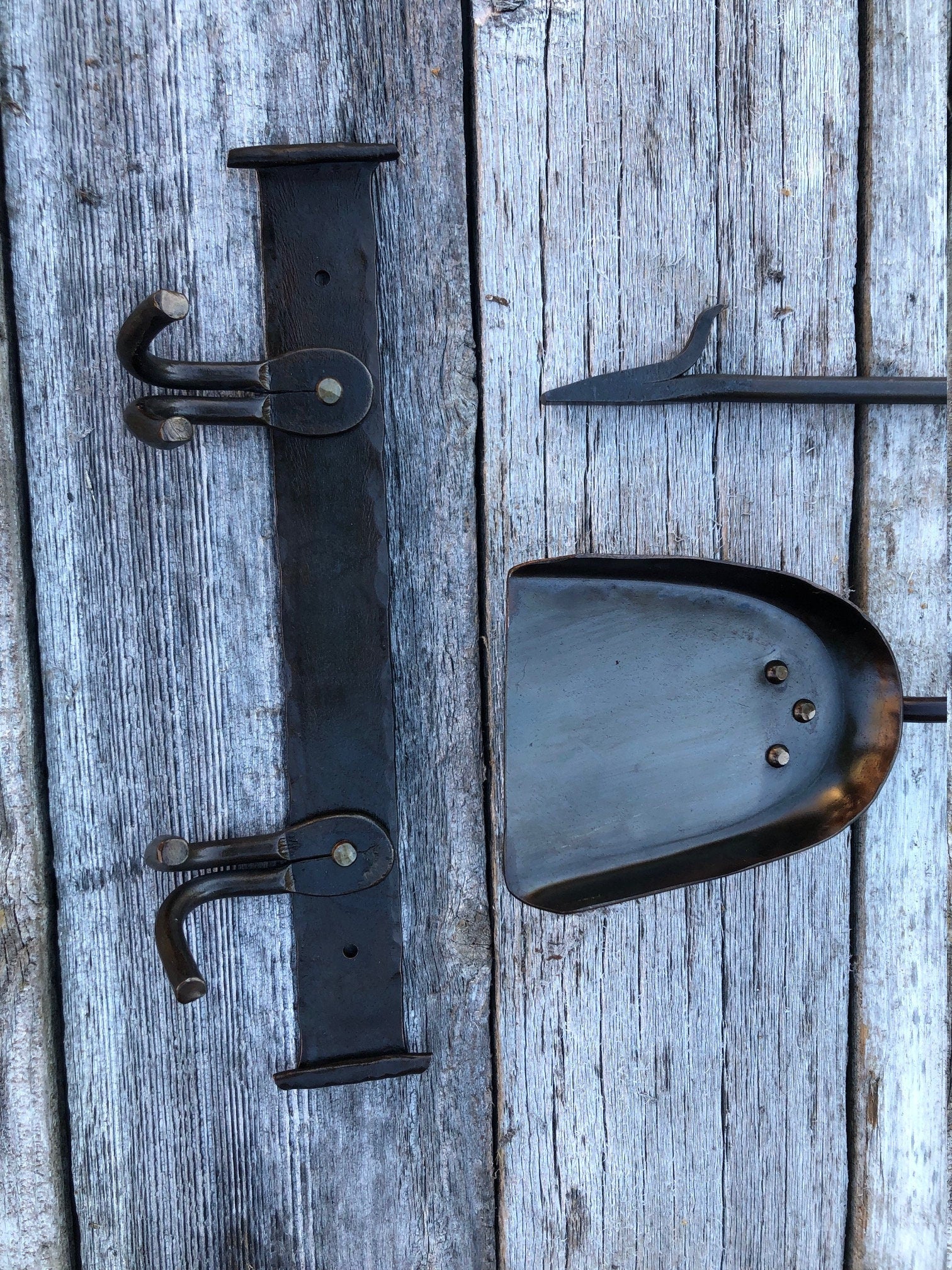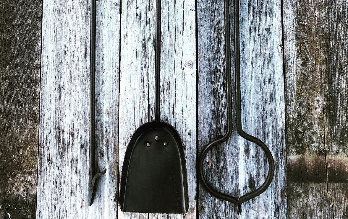 Hand forged ash shovel crafted to clean the coals and ash from your indoor or outdoor fire place. Our ash shovel comes in three different handle styles to pair perfectly with our fire pokers.