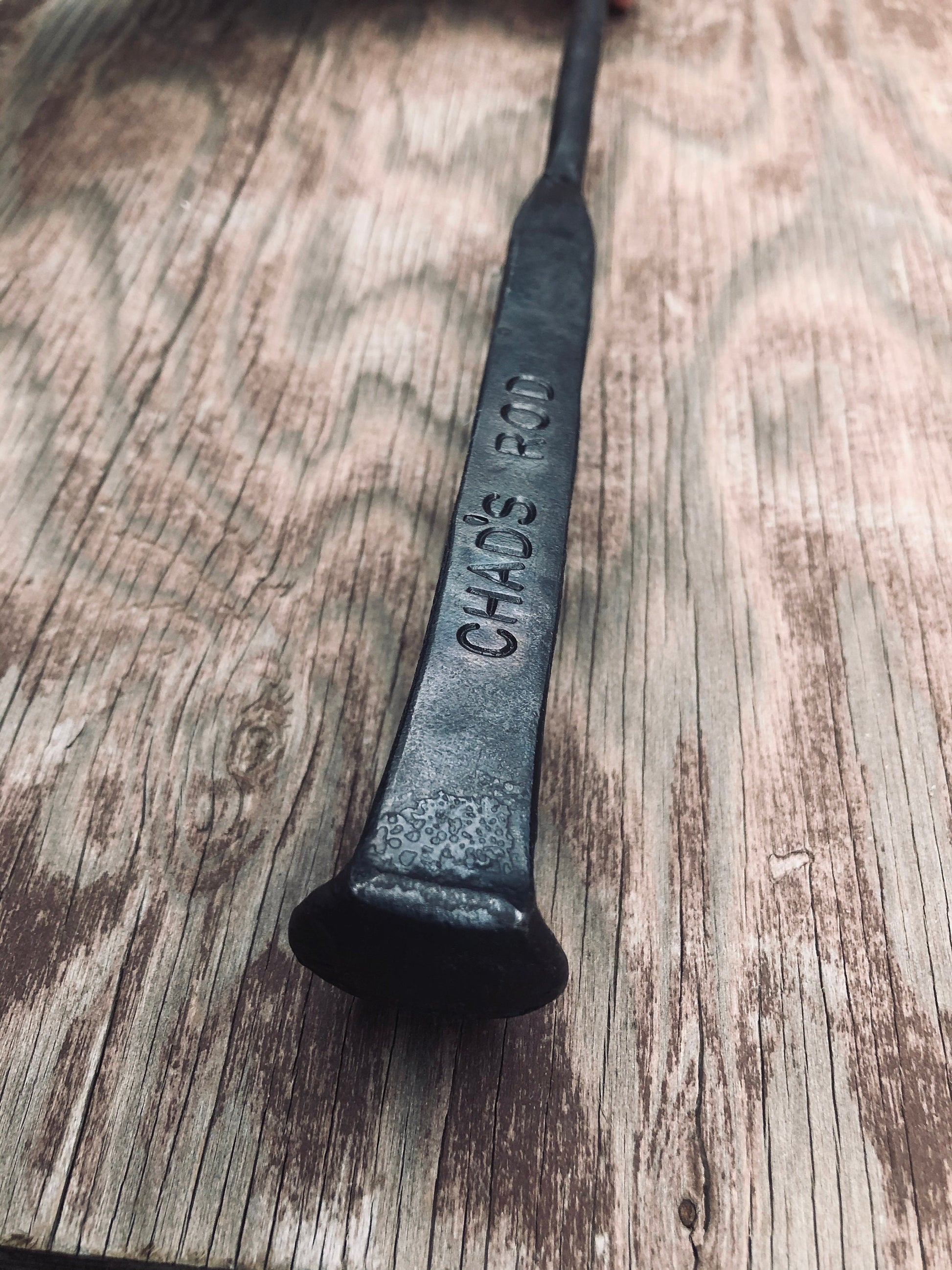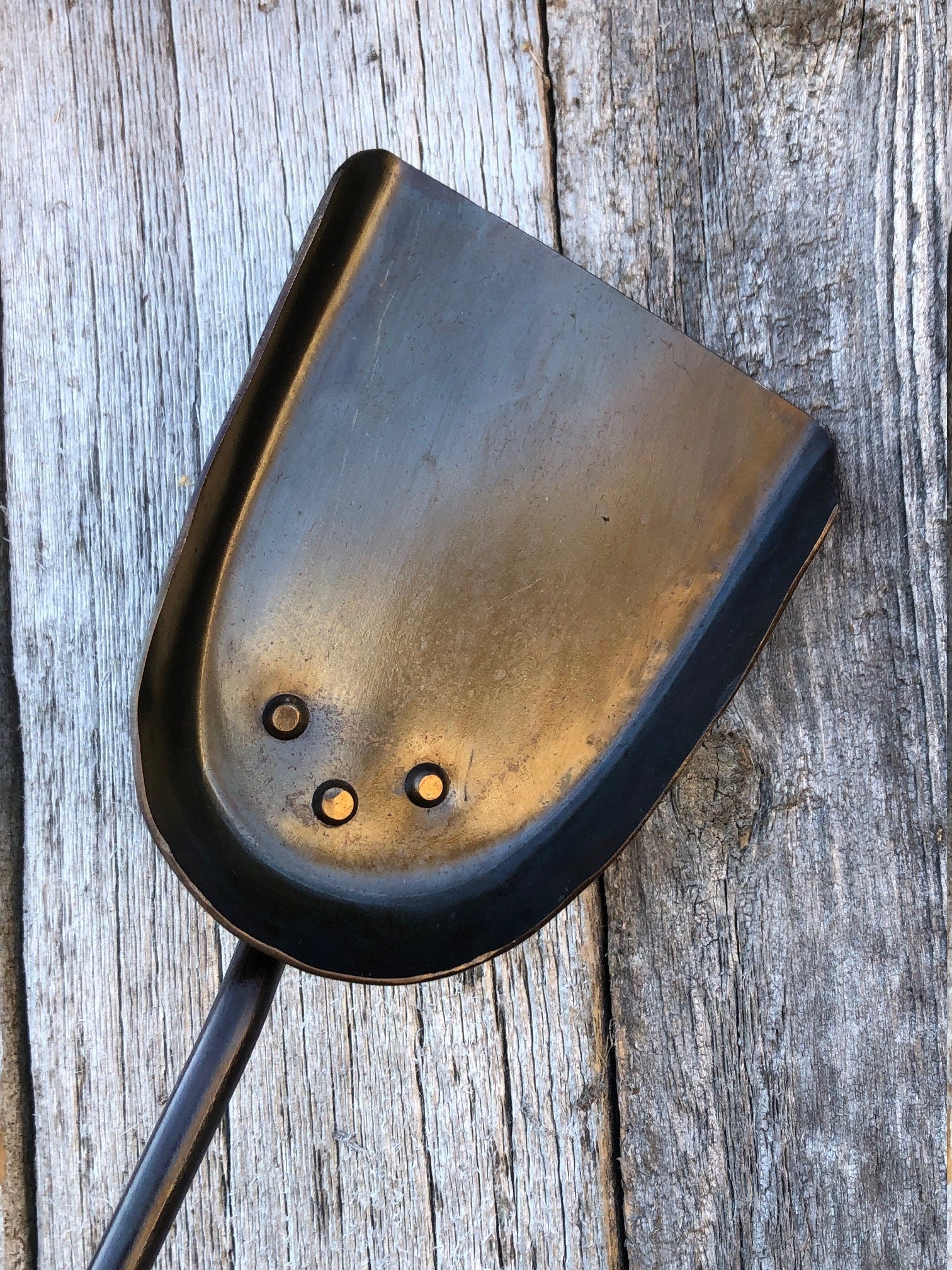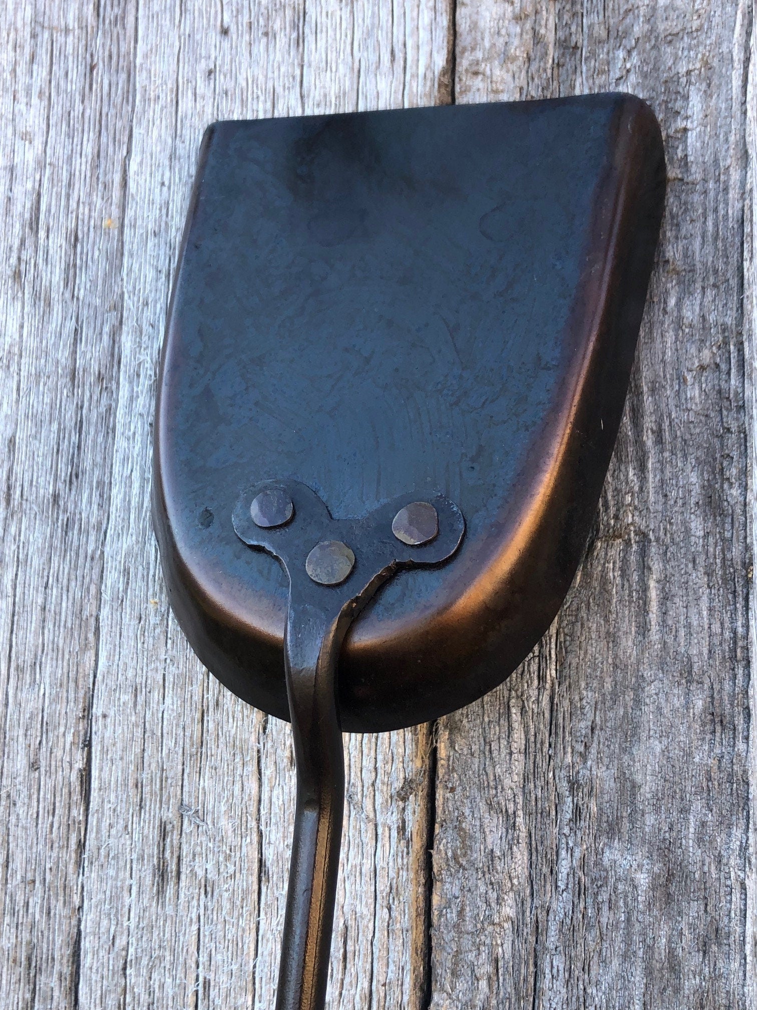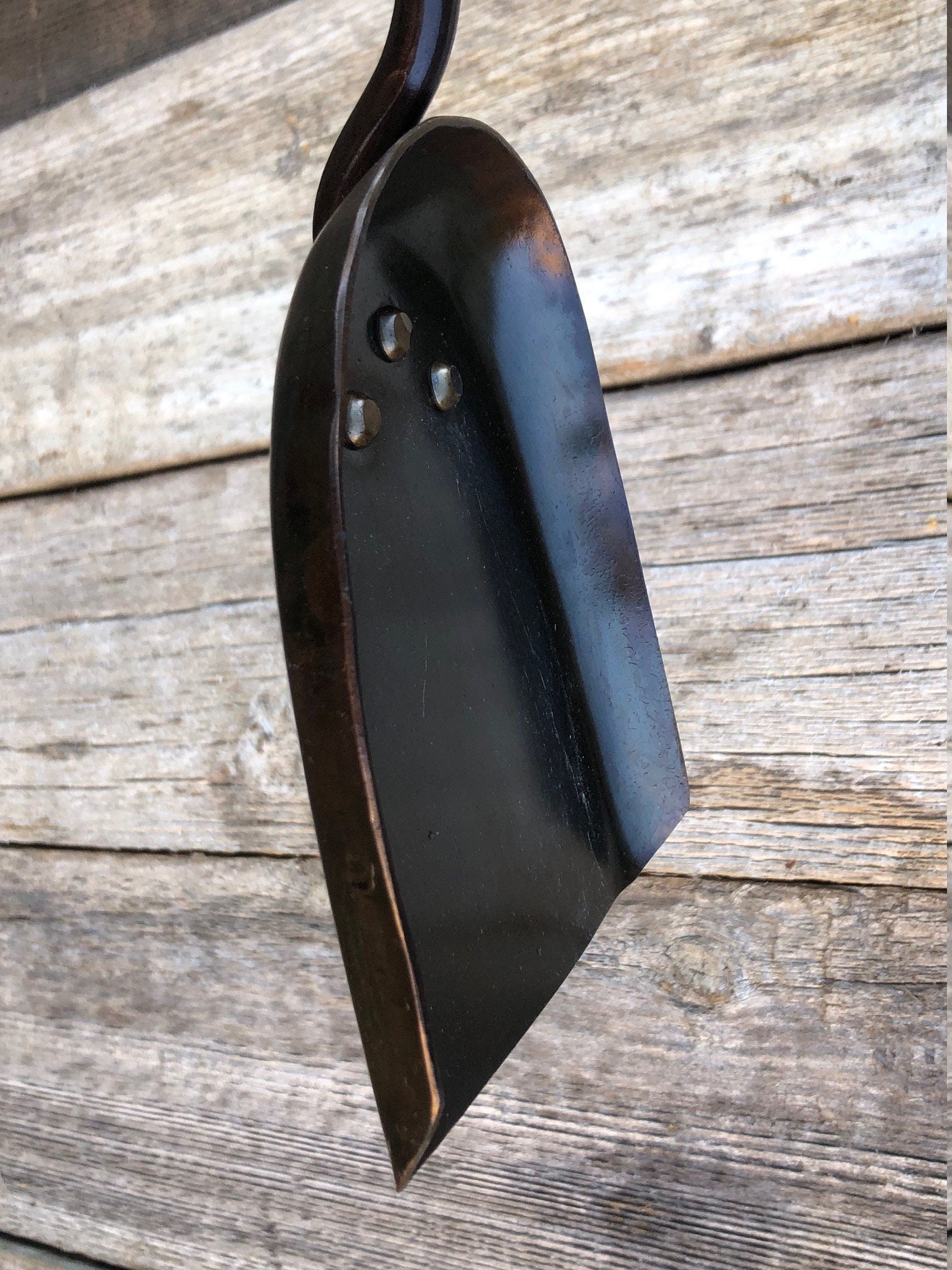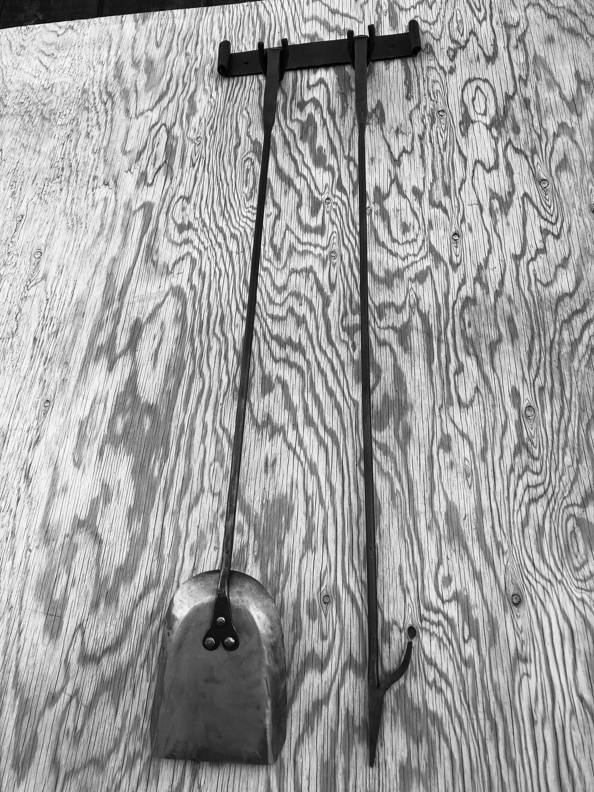 Hand forged ash shovel crafted to clean the coals and ash from your indoor or outdoor fire place. This is our personalized ash shovel that pairs perfectly with our personalized fire pokers.
