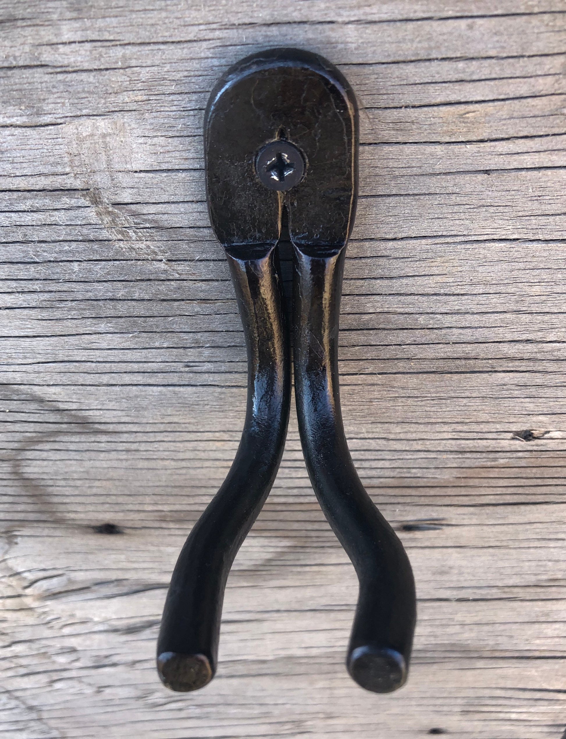 Hand-forged wall mounted rustic metal hook. Designed to hang our railroad spike tools next to fireplaces and wood stoves. Also great for hanging any number of household items. Perfect for smaller spaces or for hanging outside by the fire pit.