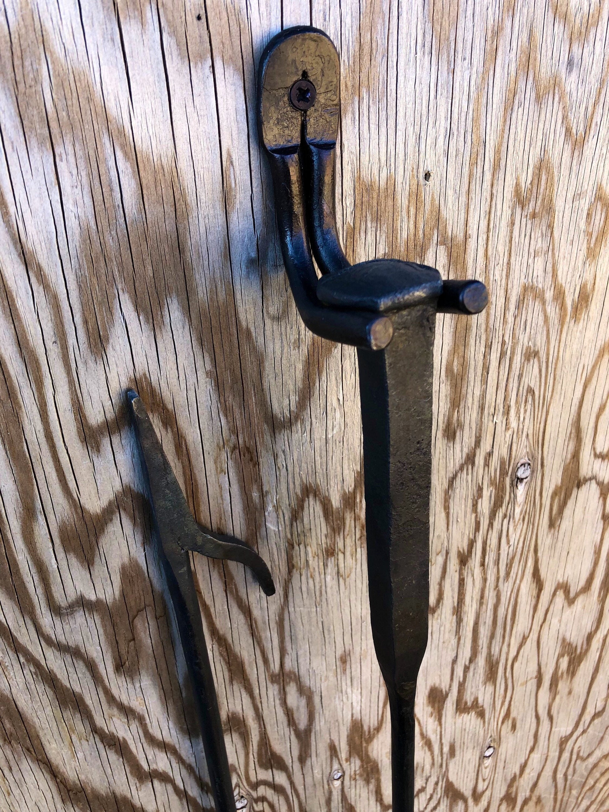 Metal Hook Hand Forged Iron - Fire Poker Hanger - Railroad Spike Handle - Handmade In USA