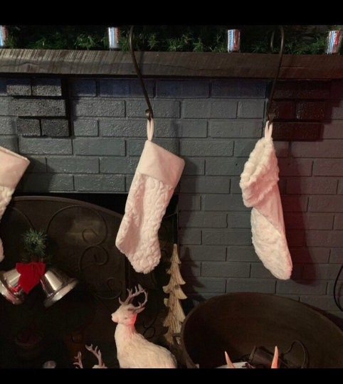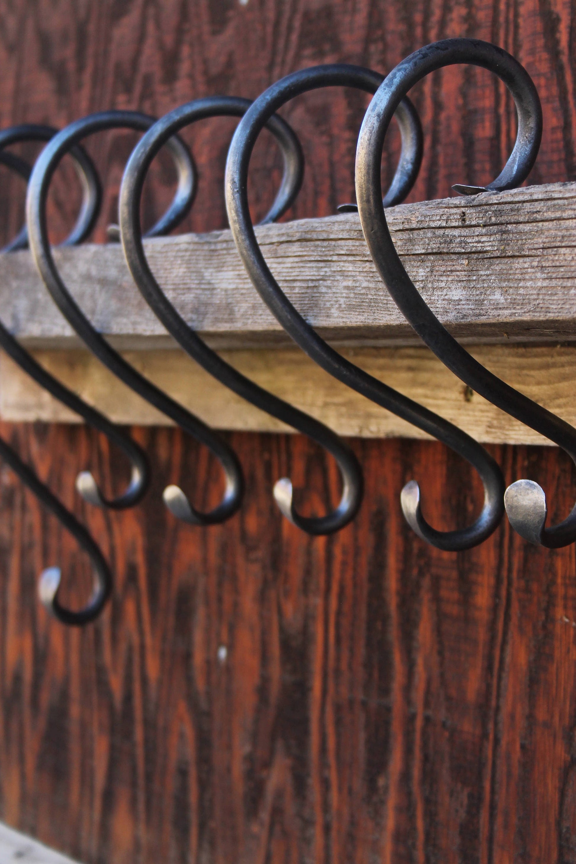 Pair of eight inch elegant hand forged vintage Christmas Stocking hanger with round edges and scrolled ends.