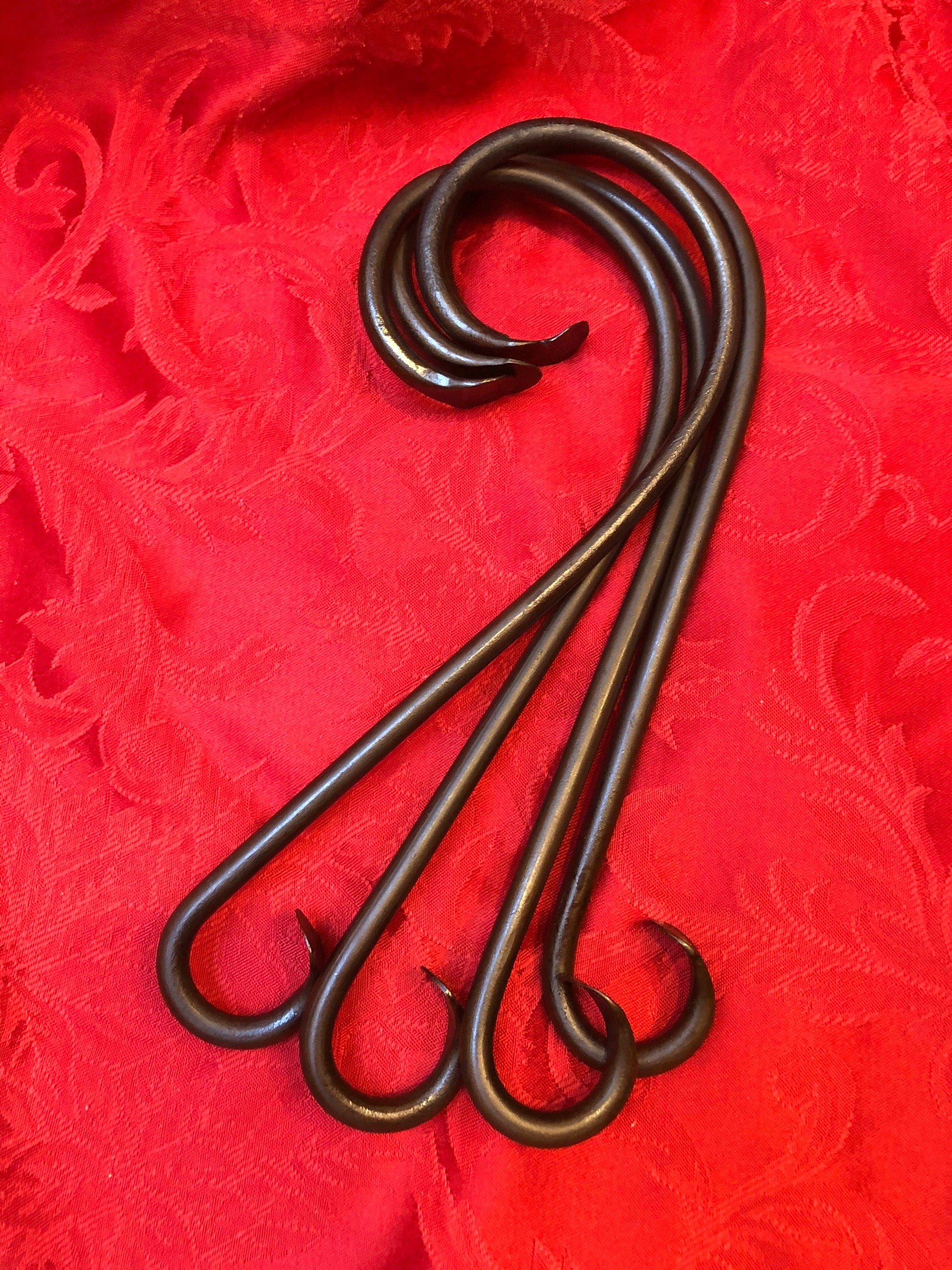 Set of 4 of our 12 inch hand forged vintage Christmas Stocking hanger with scrolled ends.